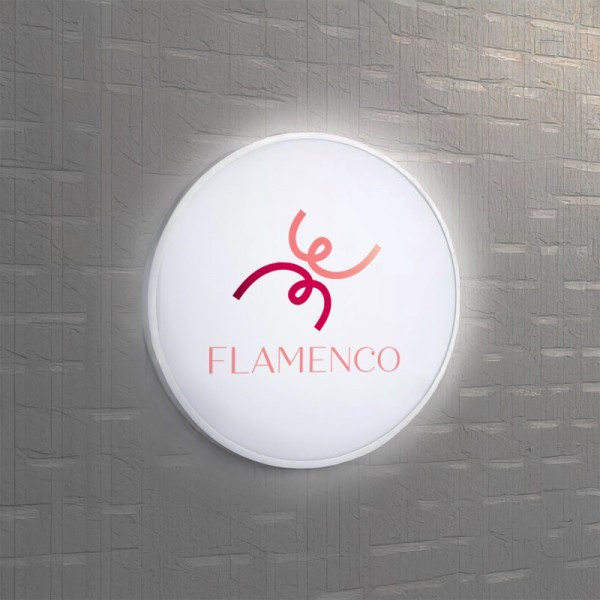 Enseigne circulaire lumineuse en drapeau.
